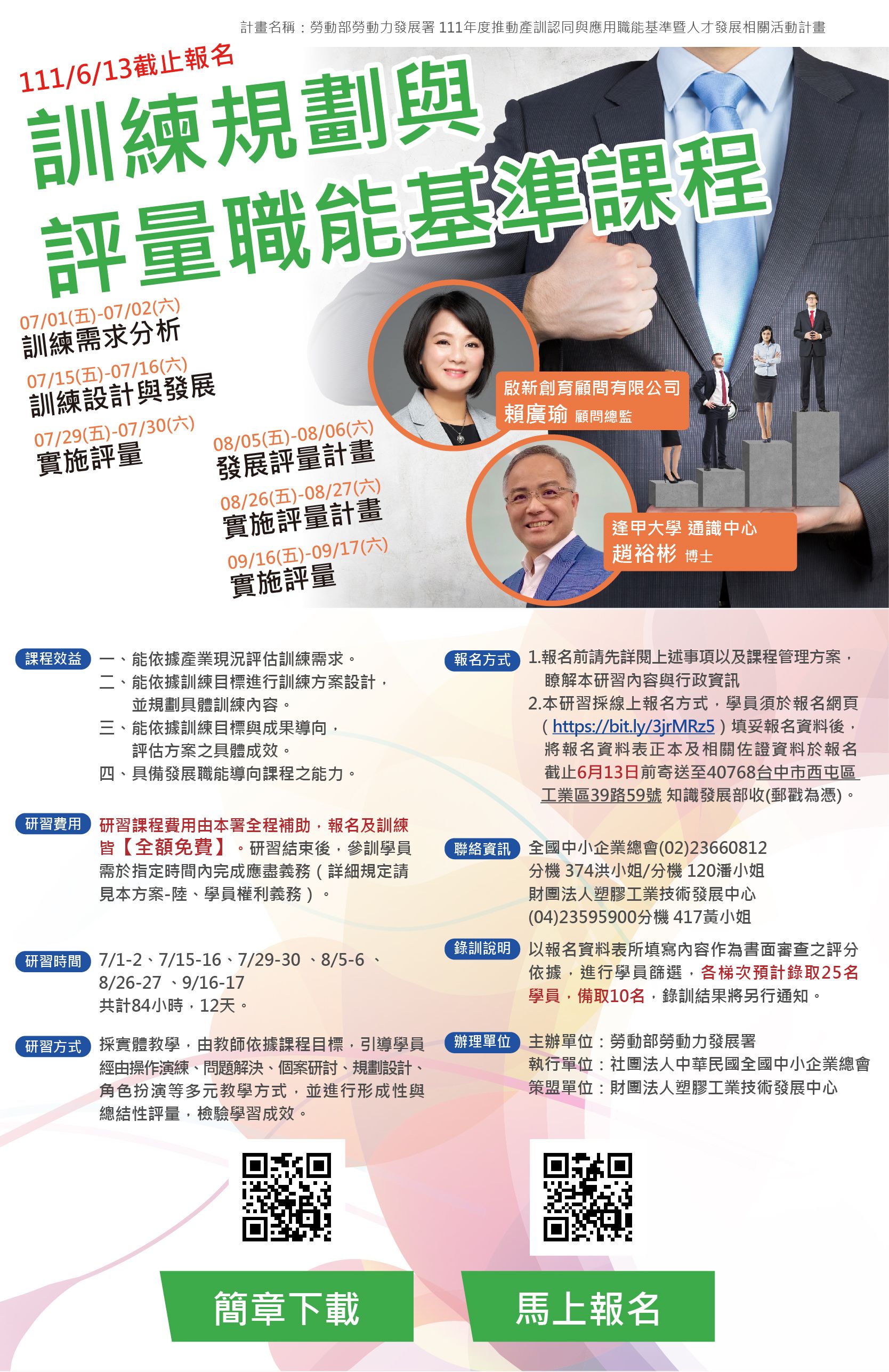 塑膠中心協助勞動部辦理2022職能培訓職能導向課程-台中梯次【訓練規劃與評量】課程,