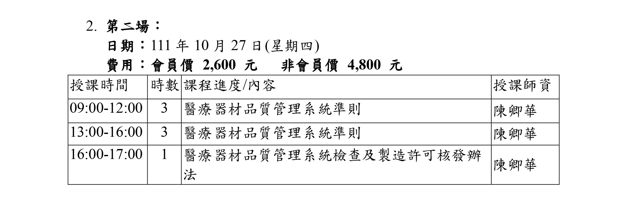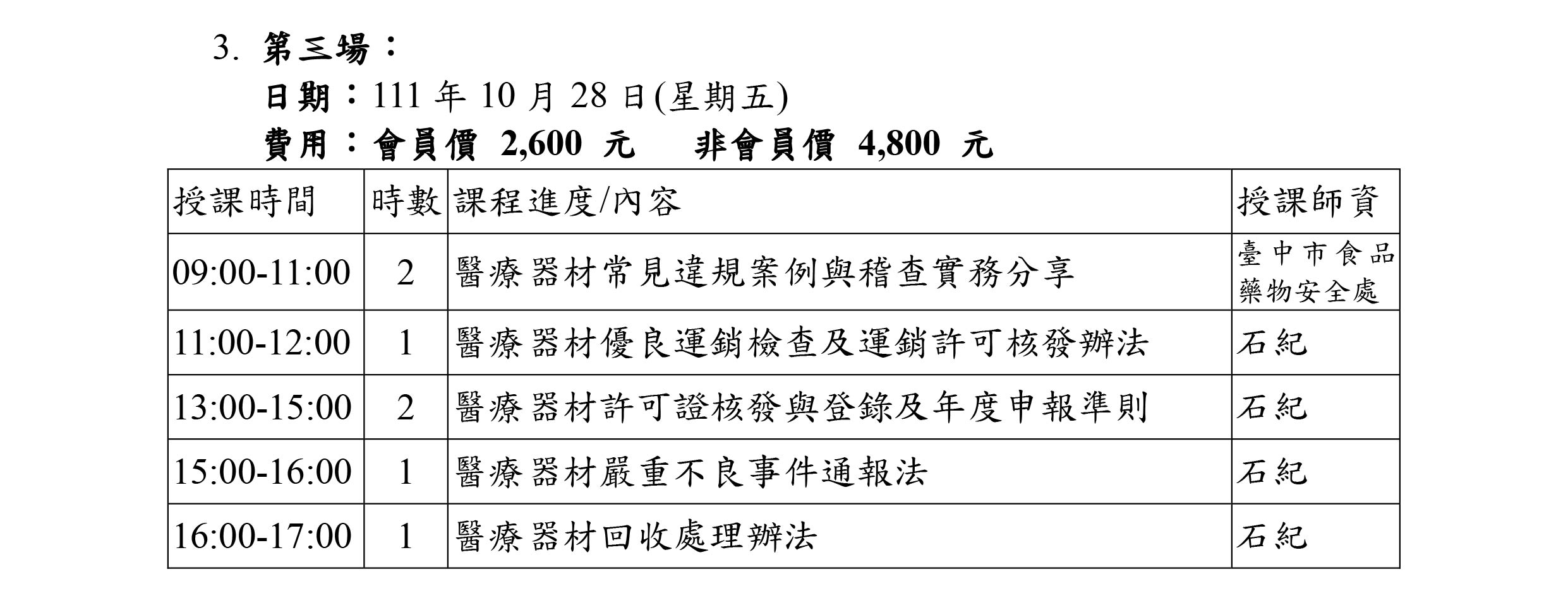 ◎【111/09/13公告】111年10月26、27、28日醫療器材技術人員教育訓練課程